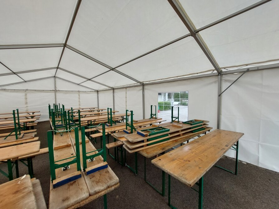 Bilder vom Aufbau der Zelte können Sie durch Klicken auf die Pfeile rechts und links vom Bild ansehen.