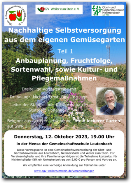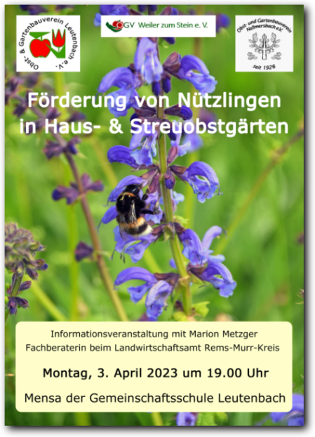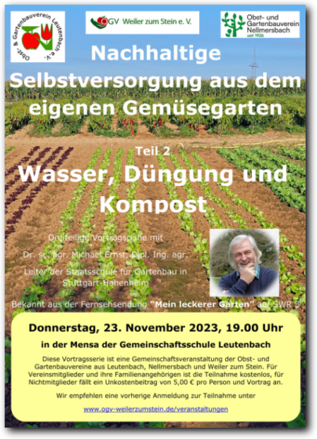 Immer wieder gibt es Abende an denen wir unsere Vereinsmitglieder und interessierte Mitbürger zu Vorträgen mit interessanten Themen, oder praktischen Unterweisungen einladen. In den letzten Jahren sehr oft gemeinsam mit den OGVs aus Nellmersbach und Weiler zum Stein.