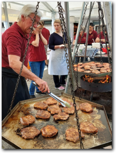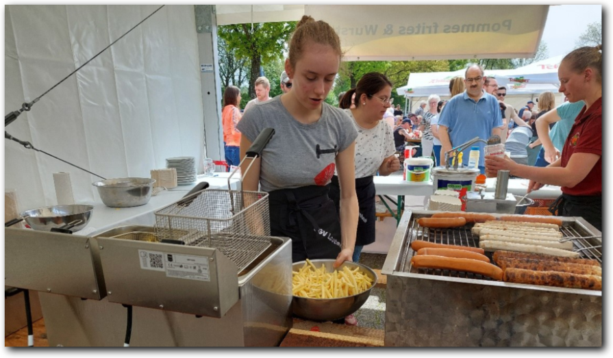 Unsere Salate werden immer frisch zubereitet, die Grill-Hähnchen, die Schwenkgrill-Steaks, als auch die Würste vom Grill und die Pommes-frites schmecken unseren Besuchern. Unsere "Göggele" sind so begehrt, dass sie immer recht schnell ausverkauft sind.