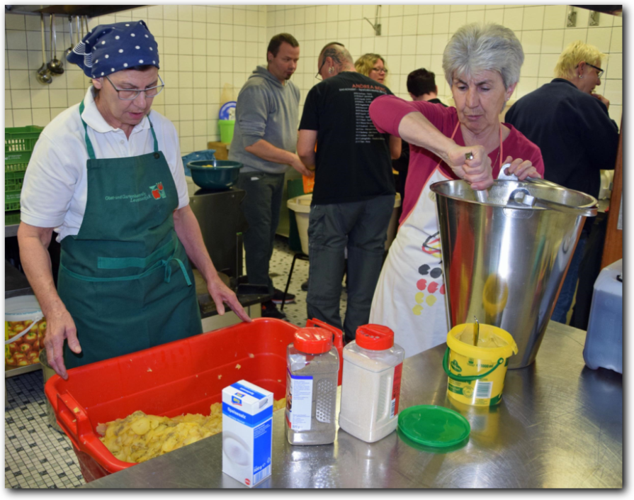 Bereits um 5.00 Uhr in der Früh startet das Kochen der Salatkartoffeln, damit diese rechtzeitig fertig gekocht sind, denn um 7.00 Uhr treffen viele weitere Helfer ein. Diese Schälen dann die Kartoffeln, Putzen den frischen grünen Salat, schneiden die frischen Kräuter, Karotten und die anderen Zutaten für unsere immer frisch zubereiteten Salate.