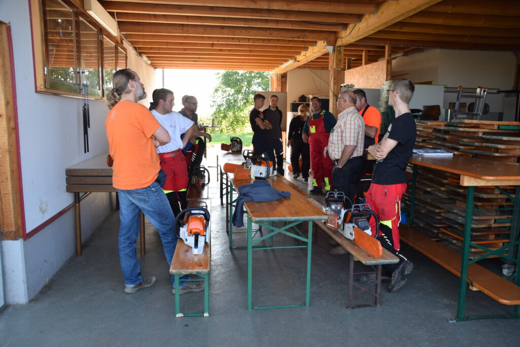 Auch die Theorie-Stunden bei der vom OGV organisierten Ausbildung zum “Motorsägen-Führerschein”, fanden in der OGV-Scheuer statt